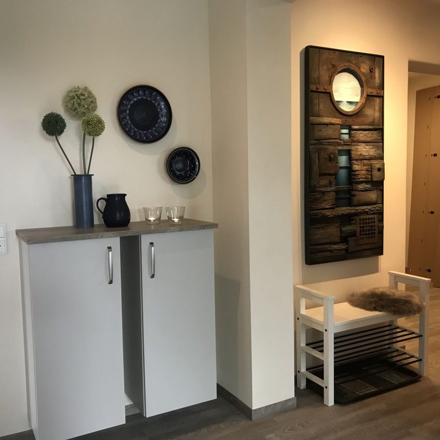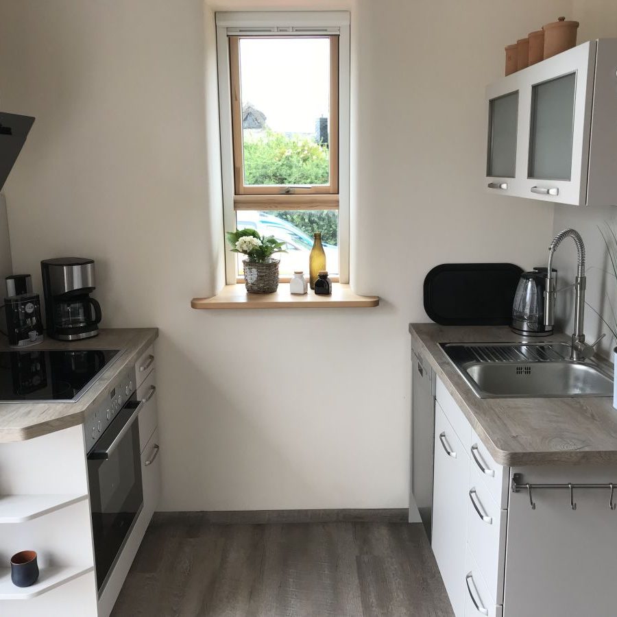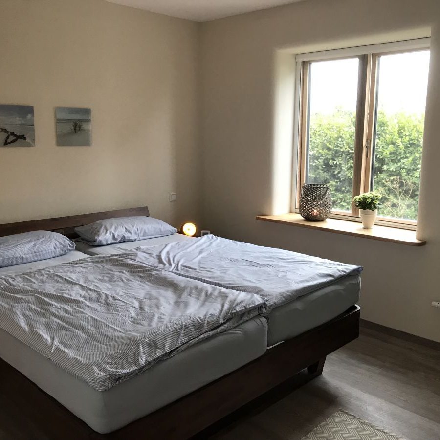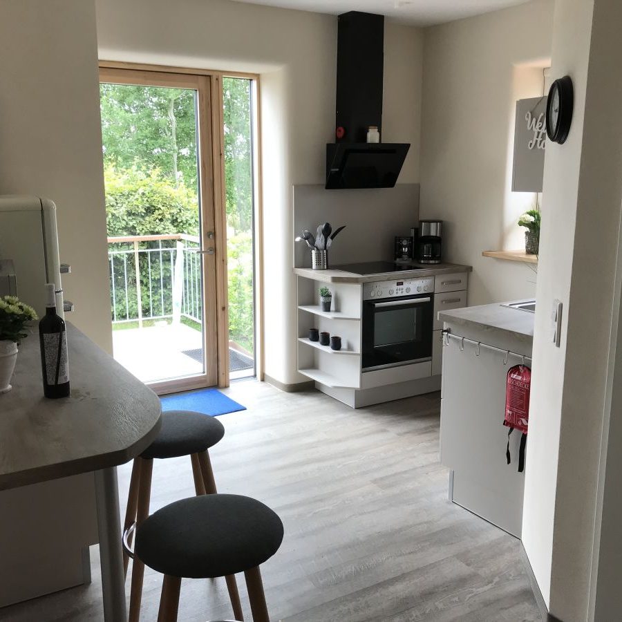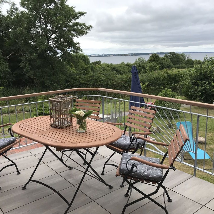Bereits beim Eintreten wird Sie die helle und exklusiv eingerichtete Wohnung begeistern. Die offene komplett eingerichtete Küche ist direkt mit dem Wohnbereich verbunden. Das Wohnzimmer bildet den Mittelpunkt der Wohnung und bietet mit der Fensterfront einen tollen Blick auf die Flensburger Förde. Die gemütliche Couch lädt zum längeren Verweilen und Relaxen ein. Auf den angrenzenden Terrassen, können Sie zu jeder Tageszeit Ihren Urlaub und die Ruhe genießen. Das Schlafzimmer ist geräumig und hat ein 180 x 200 cm großes Doppelbett. Unser modernes Bad verfügt über ein Tageslichtfenster,eine bodenebene Dusche und ein Einbauradio. Für einen erholsamen Urlaub sorgen auch die zahlreichen Insektengitter im Haus An kühleren Tage sorgen der Kaminofen und die Infrarot-Wärmekabine dafür das Ihnen nicht kalt wird.